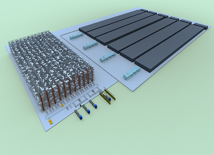光伏產(chǎn)業(yè)在最近幾年時(shí)間里得到飛速發(fā)展,可分為光伏原材料如多晶硅、玻璃等以及光伏組件。大多數(shù)光伏產(chǎn)品是以整托形式出入庫,其重量較重,尺寸較大,且存儲(chǔ)量一般較大,給自動(dòng)化物流設(shè)備帶來一定的挑戰(zhàn)。